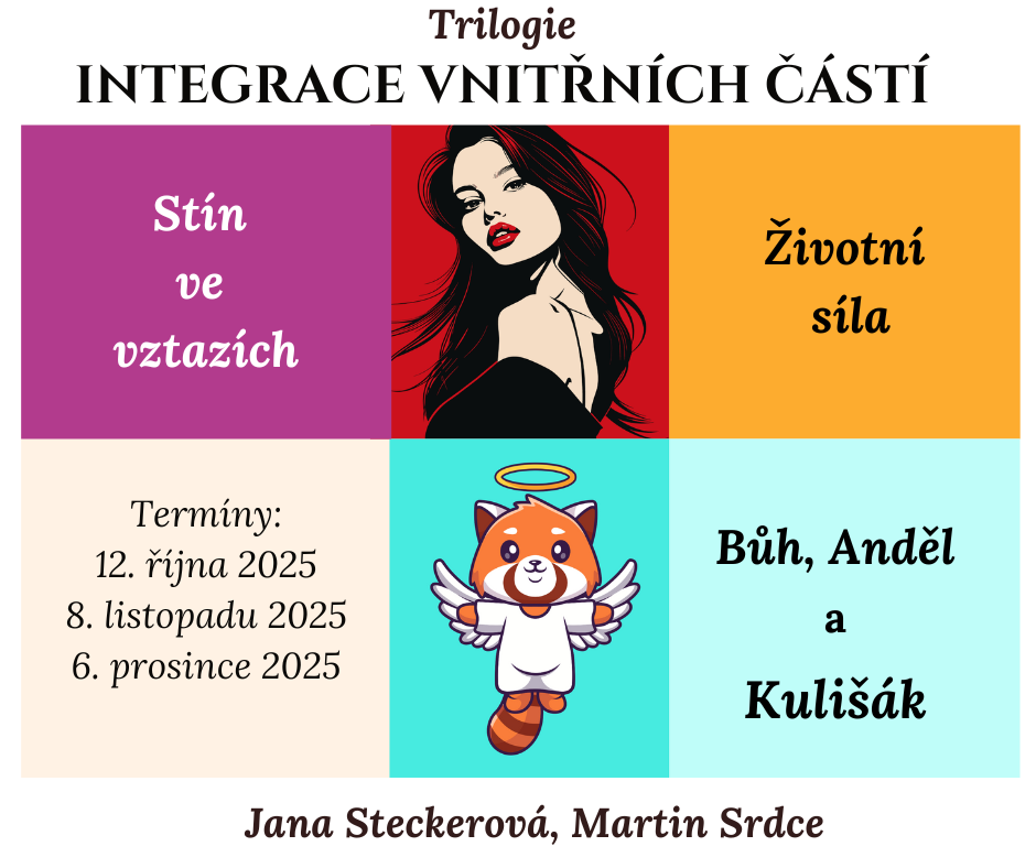 Kurz bude o objevování toho, jaké stínové kvality nám naše vztahy a situace, ve kterých se nalézáme, ukazují. Přinese jejich vynesení do vědomí a přijetí. Dokud totiž stínové kvality popíráme, jsou zdrojem naší frustrace, bolesti a konfliktů, ať už zevních či vnitřních. Naopak jejich přijetí přináší uvolnění, vitalitu a sílu.